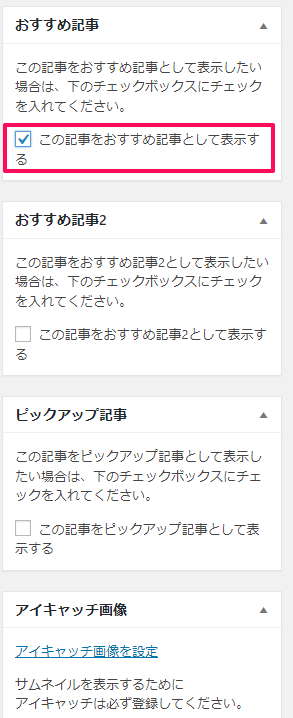 記事を投稿するとき、「この記事をおすすめの記事として表示する」にチェックを入れます。
