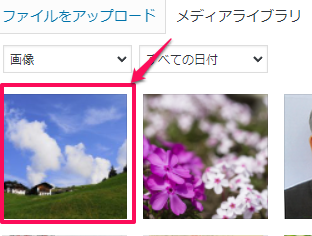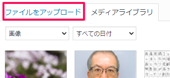 用意した画像ファイルをメディアライブラリにアップロードします。